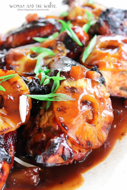Ingredients1 whole chicken cut up1 can pineapple slices in syrup2 cups soy sauce, divided2 garlic grated garlic, divided1 tsp grated ginger, divided1 cup raw sugar, divided1 cup Sake, divided1/2 cup mirin, divided!/2 cup Ponzu sauce, divided1 cup fresh orange juice, divided1 tbsp cornstarch1/2 cup watergreen onion slices for garnishpepper