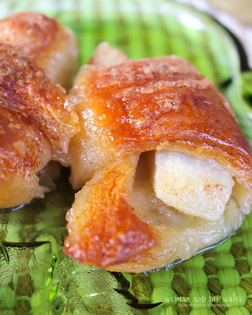 Preheat oven to 350 Degrees F. Melt butter in a small pot on low heat, add; sugar, cinnamon and vanilla. Remove from heat. Remove croissant from tubes, wrap each triangle around each apple slice, starting from the wide end then roll to the narrow end. Line in baking dish and pour sugar mixture evenly on top of apples. Pour soda evenly between the apples and bake in oven for 45 minutes. Remove from oven to let cool and to allow the juices to re-absorb back into the dumplings.